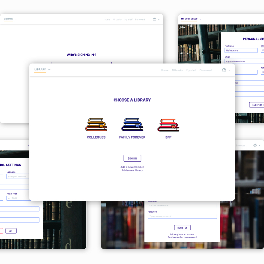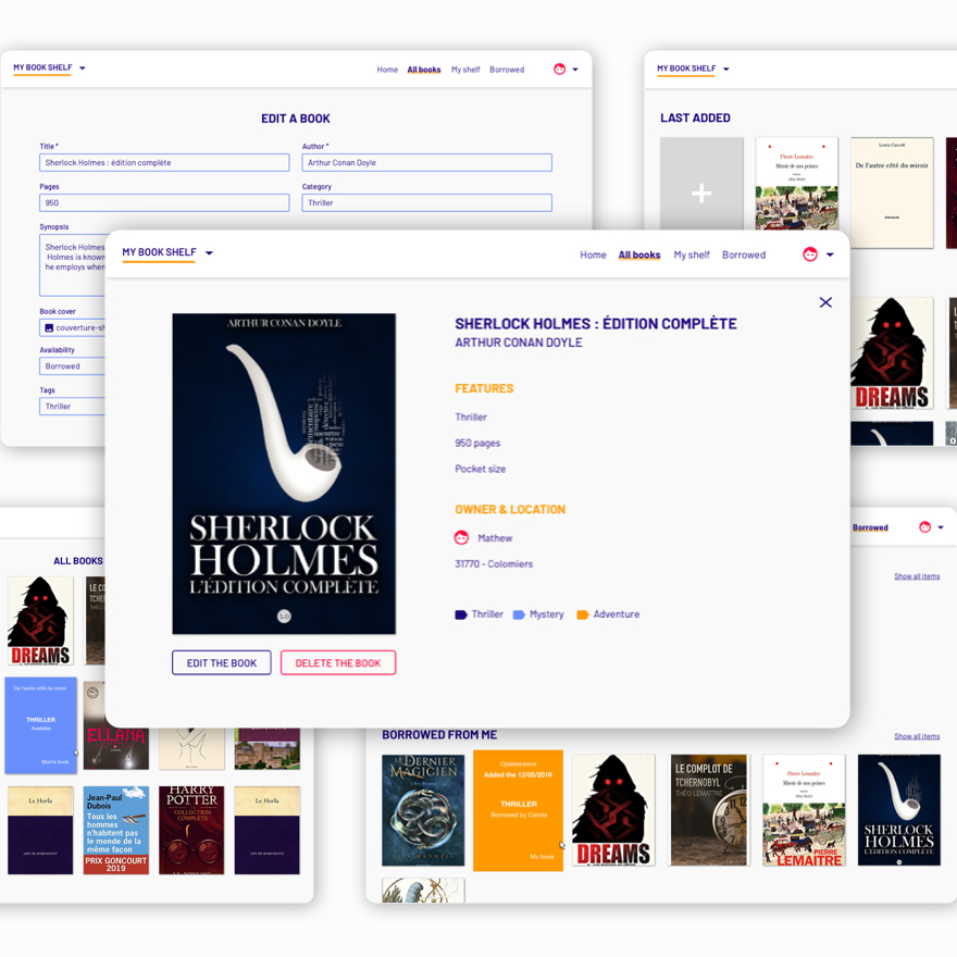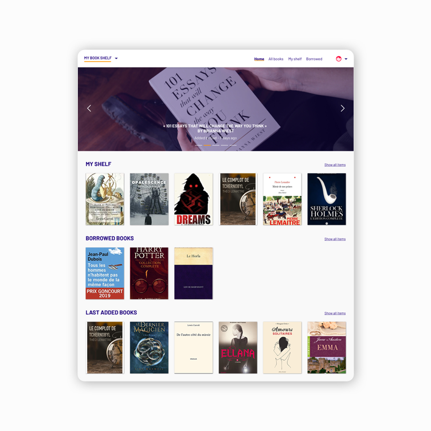 The shared library is an app that allows its users to share books and follow them. The time when you didn't know to whom you had lent your books is over. My shared library allows you to exchange your reading with your friends, your family and to be able to locate the books that you have lent! The app allows you to reserve your next readings on the shelves of other group members.